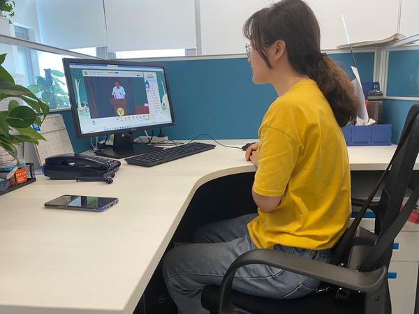 疫情阻隔身虽远,云端典礼心相连。毕业典礼正式开始前,滚动播放校团委和各二级学院制作的毕业季MV,在校生们还精心准备了诗歌朗诵。肆意飞扬的青春、熟悉的校园和同学、温馨的师长叮嘱、诚挚的学弟学妹祝福,一幕幕感人画面、一句句深情话语,让不少毕业生眼含热泪。