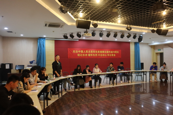 电影结束,同学们在大学生活动中心307多功厅围绕习近平总书记在纪念中国人民志愿军抗美援朝出国作战70周年大会上的讲话和观影感悟进行座谈,讲述了自己对习近平总书记讲话精神和对这场战役的心得与感悟。伟大的抗美援朝战争是中华民族历史上的一座不朽丰碑,这场战争所取得的胜利意义重大、影响深远。座谈会上大家都表示,青年学生要铭记伟大胜利,必须坚持中国共产党领导,传承红色基因,不忘初心、牢记使命,不畏艰难困苦、锐意开拓进取,为实现中华民族伟大复兴的中国梦不懈奋斗。