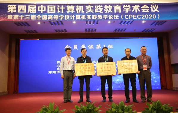 大会举行了热烈的授牌和颁奖仪式,云鼎国际4118welcome计算机专业实验教学中心获颁中国计算机实践教育联合会会员单位牌匾。