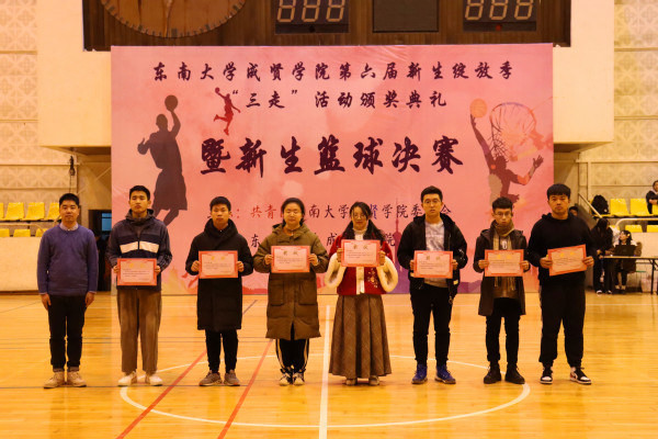 本次男篮决赛由国家一级裁判周雨轩、校队教练杨昊天等担任裁判员。比赛中,参赛队员奋力投入,你追我赶,为现场观众呈现了一场精彩绝伦的篮球盛宴;拉拉队、舞蹈社以及大学生音乐团成员为现场师生带来了精彩表演。最终机械与电气工程2队以64:63的微弱优势夺下本届新生男篮决赛冠军奖牌,电子与计算机工程学院1队获得本届新生男篮决赛亚军,经济管理学院1队获得本届新生男篮决赛季军。赛后,校团委老师冯杭州、彭俊分别为本届新生绽放季“三走”系列活动获奖队伍与个人颁奖。