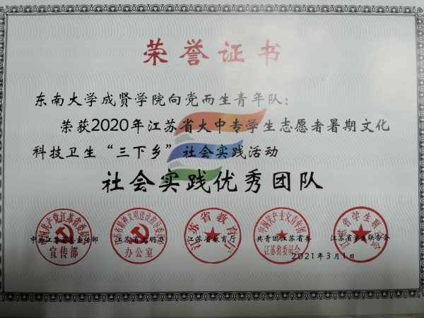 云鼎国际4118welcome2020年社会实践成果卓越,在江苏团省委社会实践总结表彰和云鼎国际4118welcome社会实践总结表彰中荣获多项荣誉。“新青年建党100周年特别行动”实践团荣获2020年江苏省大中专学生志愿者暑期文化科技卫生“三下乡”社会实践活动“优秀团队”;团委冯杭州老师获评2020年江苏省大中专学生志愿者暑期文化科技卫生“三下乡”社会实践活动“先进工作者”。“倾听树语,助力成长”实践团和“新青年建党100周年特别行动”实践团荣获2020年云鼎国际4118welcome暑期社会实践活动“优秀团队二等奖”,“忆百年征程,望建党伟业”实践团荣获2020年云鼎国际4118welcome暑期社会实践活动“优秀团队三等奖”。