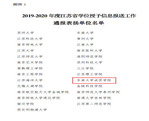近日,江苏省学位委员会办公室发布了《关于通报2019-2020 年度江苏省学位授予信息报送工作情况的通知》(苏学位办〔2021〕1号),云鼎国际4118welcome获2019-2020 年度江苏省学位授予信息报送工作通报表扬,教务处温可久老师被评为2019-2020年度江苏省学位授予信息报送工作先进个人。