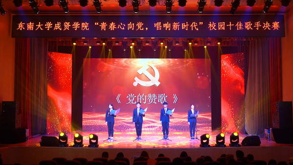 本次比赛自四月启动以来,共吸引来自全校的70名选手报名参加,经过初赛、复赛层层选拔,共有10名选手进入决赛。在决赛中,选手们围绕“喜迎建党100周年推荐曲目”,以独唱或邀请助唱嘉宾合唱等形式共同呈现歌曲;校内专业评委依据思想内容、音色音准、艺术效果、台风形象等方面进行现场打分。经过激烈的角逐,最终经济管理学院2019级国贸1班胡可、制药与化学工程学院2019级护理学1班赵戈等两名选手获得一等奖,机械与电气工程学院2019级输配电1班李祾祎、机械与电气工程学院2019级机械工程3班钱金莲以及建筑与艺术设计学院2019级建筑学1班杨潇俊等三名选手获得二等奖,经济管理学院2017级财务管理2班杨瑶瑶、制药与化学工程学院2020级护理学2班谭子一、经济管理学院2018级电子商务1班杨子寒、土木与交通工程学院2020级土木工程2班蔡雨欣以及制药与化学工程学院2019级化工与制药类2班郑冬霞等五名选手获得三等奖。本届比赛在全场齐唱《没有共产党就没有新中国》中落下帷幕,现场观众用最美歌声献礼党的百年华诞。
