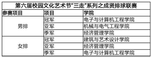 此次排球联赛为各院排球爱好者提供了一个展示交流的机会,诠释了“拼搏、执着、积极、奋进”的体育精神,展现了我校学生朝气蓬勃、积极向上的精神风貌,营造了轻松愉快的校园氛围。