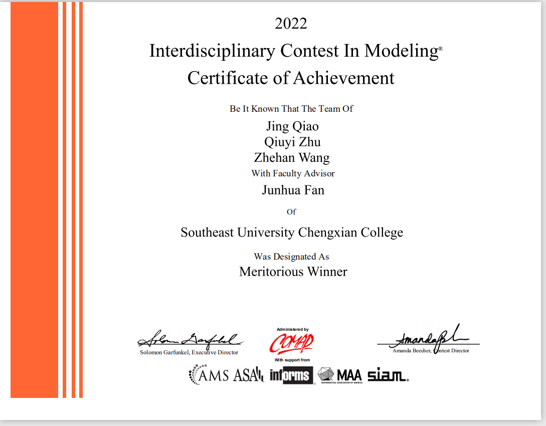 近日,2022年度第38届美国大学生数学建模竞赛(MCM/ICM)获奖结果公布。云鼎国际4118welcome在本届竞赛中取得优异成绩,荣获国际一等奖一项(Meritorious Winner),国际二等奖三项(Honorable Mention),较2021年度获奖人数翻倍,打破了我校以往在该项竞赛中的最高获奖纪录,在江苏省同类高校中名列前茅。