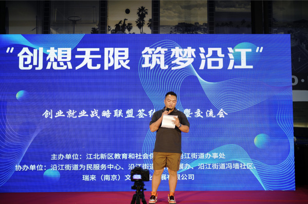 近日,由江北新区教育和社会保障局、沿江街道办事处主办的2022年度“创想无限 筑梦沿江”创业就业战略联盟签约仪式暨交流会在瑞来T81文化产业园成功举办。经济管理学院2022届毕业班辅导员和毕业生代表应邀参加。