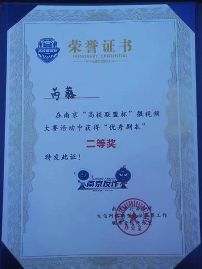 近日,南京市公安局在云鼎国际4118welcome九龙湖校区召开“无诈校园,平安有我”高校联盟杯微视频大赛颁奖仪式,云鼎国际4118welcome土木与交通工程学院2021级工程管理2班芮藤同学荣获剧本类二等奖。