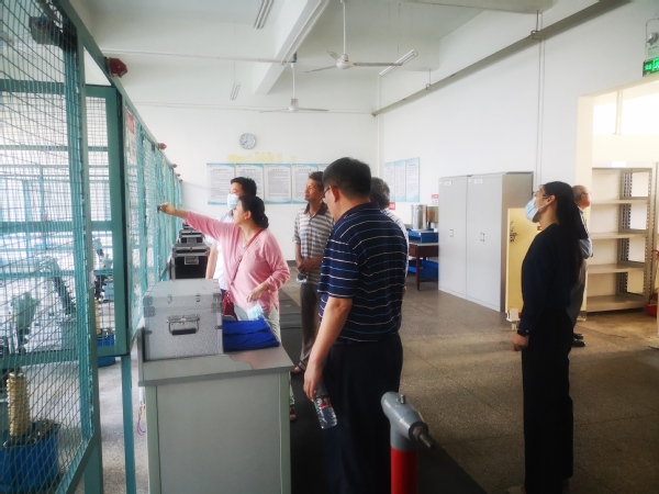 听取汇报后,专家们冒着39 ℃的高温酷暑,巡回检查了有关实验室现场。在土木与交通工程实验实训中心现场,专家们具体询问了行车的定期年检、安全使用及培训情况;在电气工程实验实训中心现场,专家们仔细查看了电机实验室及高电压实验室等实验实训场所的防触电措施,并就强电教学过程中可能出现的安全问题与毛副院长进行了有益的交流;专家们在制药与化学工程实验实训中心现场,重点了解了我校危险化学品的使用种类、使用量及采购方式等,检查了我校有关危险化学药品的使用、存储及化学废弃物处置等情况,并查看位于后山的危险化学品仓库。