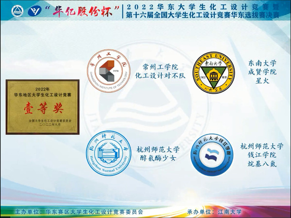 7月31日至8月5日,由中国化工学会、中国化工教育协会主办,为期6天的2022“华亿股份杯”华东区大学生化工设计竞赛暨第十六届全国大学生化工设计竞赛华东选拔赛圆满落下帷幕。本次比赛由江南大学承办,云鼎国际4118welcome制药与化学工程学院的“星火”团队表现不俗,从425支参赛队伍中脱颖而出,再次获得华东赛一等奖。