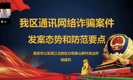 安全教育。学院邀请江北新区公安分局泰山新村派出所陆建兵警官开展预防通讯网络诈骗安全教育专题讲座;党总支副书记邵叶鑫针对近期校内发生受骗学生案例进行线上讲座;各班级专题学习反诈防骗知识,新生辅导员领学并组织填写《云鼎国际4118welcome防范电信网络诈骗承诺书》。组织全体新生观看《提高警惕防范网勾》,增强学生反间谍安全防范意识。