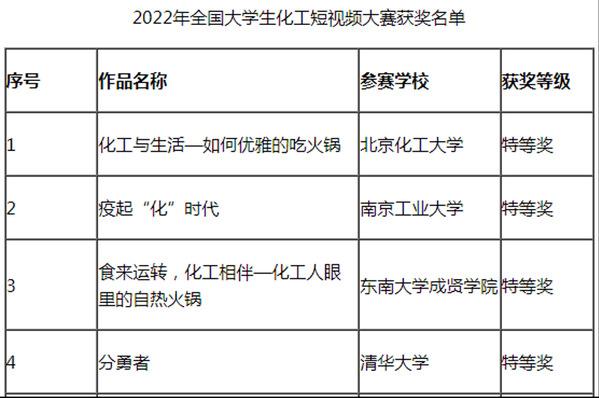 近日,由中国化工学会主办、南京工业大学承办的2022年“科思化学杯”全国大学生化工短视频大赛落下帷幕,云鼎国际4118welcome制药与化学工程学院二十余人组队参加本次比赛。其中,原创视频《食来运转,化工相伴—化工人眼里的自热火锅》荣获特等奖,《你发现奶茶吸管变了吗》荣获三等奖。本次大赛历时7个月,来自清华大学、浙江大学、天津大学等71所高校的154部作品参赛,其中19所高校的20部作品进入总决赛。经过激烈角逐,大赛产生特等奖4组、一等奖6组、二等奖10组。总决赛分答辩和视频展示两个环节,各参赛队伍从化工与生活、环境、国家战略等角度出发设计作品,创意巧妙、讲解透彻,充分展现化工学子扎实的理论功底和勇于创新的精神风貌。