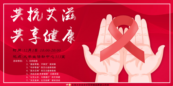 防艾周,“守护青春”防艾公益微视频、“观艾,关爱”灯光展览、“画艾有声”、防“艾”讲座宣传、“艾”海报设计大赛、“为艾奔跑”穿越校园挑战赛、“因为艾情”防艾主题情景剧、“盛放青春,不惧艾”篮球赛等一系列多姿多彩的防“艾”教育活动将陆续在校园上演,活动倡导广大师生对于艾滋病患者关爱理解而并非歧视疏离,对于艾滋问题勇敢直面而非恐惧逃避,作为防艾主体洁身自爱,珍爱生命。