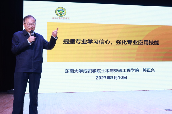 第二篇章“勉悟精习”中通过感悟学院精神文化、聘任新生班级学生班指导,聘任新生班级班主任,聘任校友导师,聘任企业导师5个环节集中阐述了土木与交通工程学院在学生价值引领工作中的七大创新举措即精神引领、专业引领、朋辈引领、德育引领、社会引领、榜样引领和旗帜引领。校企合作单位代表南京慧筑信息技术研究院有限公司总经理倪树新先生也向2022级新生展现了新时代企业的风采和提出了新时代对大学生的要求。随后,郭正兴教授为土木与交通工程学院的全体师生生动讲述了行业发展的新需求和新技术,以自身的实践与经历增强了同学们对未来土木行业发展的信心,希望同学们在未来能够掌握更多的技术与技能,成为多样化人才。