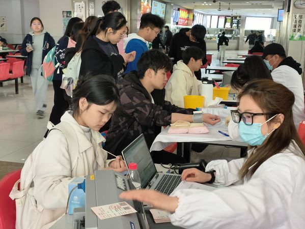 献血活动期间,我校在食堂主干道和新宿舍小广场分别设置了无偿献血活动点,每个点位又划分了填报信息、体检、饮水、献血、领取献血证及纪念品五个区域。活动全部流程严格按照献血规定执行,志愿者们各司其职,组织献血学生登记、体检、验血、等候、抽血,现场井然有序。我校志愿者们与血液中心的医护人员积极配合,怀着对献血工作的满腔热忱,共同保障了活动的顺利进行。无偿献血意义重大,一定程度上不仅有效补给了血液库存,更好地保障了临床用血,也是一种救死扶伤、大爱无疆的博爱育人实践。