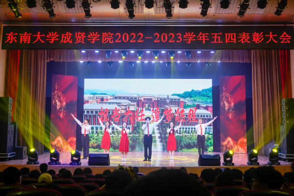5月5日晚,“学习二十大,永远跟党走,奋进新征程”学院2022-2023学年五四表彰大会在综合楼报告厅举行。党委副书记、副院长、纪委书记王荣,党委学工部部长、学生处处长施杰,团委书记、党委学工部副部长潘明烽,后勤管理处副处长丁秀山,20届校友优秀毕业生、六合区雄州街道刘昊,分团委书记、辅导员老师及学生干部代表约600人参加了大会。