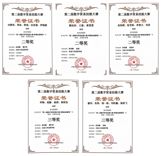 2023年5月22日,由中国对外贸易经济合作企业协会主办的第二届数字贸易技能大赛全国总决赛落下帷幕。此次大赛共有3396支队伍参赛,经过五天,每天12小时的马拉松式赛程,我校师生斩获全国二等奖3项,三等奖2项。