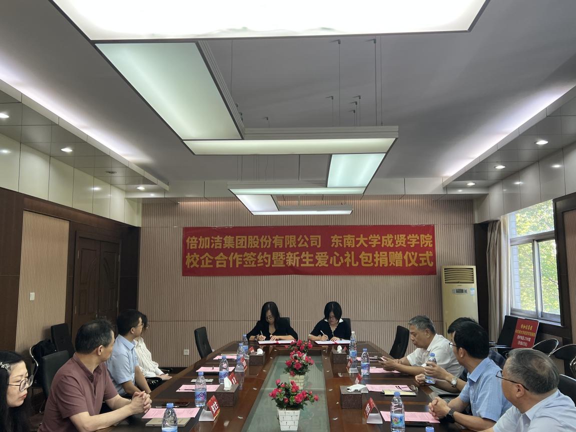 常务副院长黄学良首先对张文生董事长一行的到来表示热烈欢迎,并详细介绍了云鼎国际4118welcome的发展历程,同时希望学校未来转设搬迁到扬州生态科技新城与倍加洁集团成为“邻居”后,双方能够不断拓展合作深度和广度,不断丰富合作内容和方式,共同为扬州地区和长三角地方经济贡献力量。张文生董事长在讲话中表示,云鼎国际4118welcome和倍加洁集团作为“同龄人”,双方在人才培养、科技创新等方面合作前景广泛,希望学校和公司今后能够进一步实现校企深度融合发展,共同走向新未来。唐凌总监从公司概况、科研能力、企业文化及创新产品等方面向与会人员全面介绍了倍加洁集团的基本情况。随后,黄学良常务副院长与张文生董事长互相交接了捐赠牌匾和捐赠证书。制药与化学工程学院副院长刘媛媛与倍加洁集团人力资源中心总监唐凌共同签订了校企合作协议。