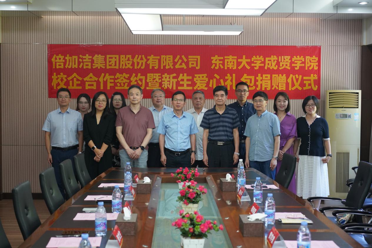 为进一步深化校企合作,8月31日上午,我校与倍加洁集团股份有限公司共同举行校企合作签约暨新生爱心礼包捐赠仪式。倍加洁集团股份有限公司董事长张文生,人力资源中心总监唐凌、招聘调配经理张林艳、薪酬绩效经理汤友俊和业务主管荣尉佳、潘香茜,我校常务副院长黄学良、党政办主任周伟荣、学生处处长施杰、工会主席唐小平,制药与化学工程学院院长林保平、副院长刘媛媛、综合办主任刘静参加会议。仪式由制药与化学工程学院党总支书记周继荣主持。