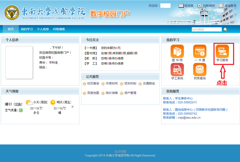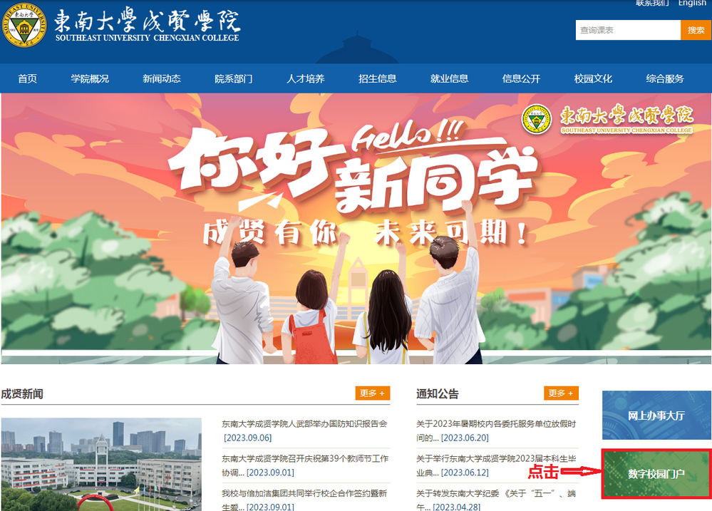 一、登录学校官网,网址:/,点击“数字校园门户”