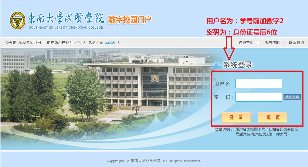 二、按要求如图2,输入用户名和密码后,点击登录,进入数字校园门户