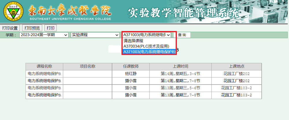 2.如图5所示,某些专业的学生个人课中有部分实践类课程名称显示为蓝色字体的,此类课程的课表在我校实验教学智能管理系统中显示,学生可逐个点击此类课程名,系统将自动链接实验教学智能管理系统,并展出该课程的详细安排,如图6所示