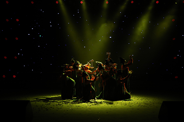 晚会分为15日、16日两场演出,在灯光秀和开场舞蹈《we rock》《yes ok》的欢快旋律中拉开帷幕。歌曲串烧《门》《永不失联的爱》《天黑黑》轻松愉悦;舞蹈《面纱》、说唱《麒麟》充满力量,潇洒利落;歌舞《逐梦》、合唱《有我》献给一代代不负时代重托的中国青年;民乐《象王行》展现气吞山河的磅礴景象;小品《反诈银行》诙谐幽默地讲述真实诈骗案例;舞蹈《只此青绿》以“青绿”彰显中华之美,用舞蹈绘就《千里江山图》;舞台剧《穿越时空的电台》跨越时空共享《歌唱祖国》诞生的幸福;音诗画《忆江南》将多种艺术形式融入《富春山居图》山水意境;民舞《唐宫夜宴》惟妙惟肖,带领观众穿越千年时光,共赴唐宫夜宴,晚会中时装秀、社团秀、退伍学生欢迎仪式以及招生视频、军训视频播放等环节形式丰富、内容精彩,现场不时响起雷鸣般的掌声与喝彩声。晚会最终在意气风发的歌舞《New Youth》里结束,在场领导、老师和演职人员合影留念,为本场活动画上了圆满的句号。