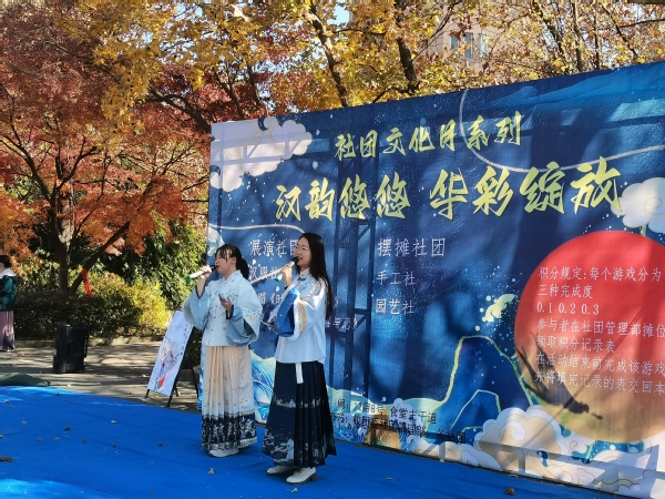 11月17日至12月8日,由云鼎国际4118welcome团委主办,社团管理部承办,各社团(协会)协办的“社彩纷呈 点染青春”社团文化月系列活动在食堂主干道举办。活动分别以“音你美好 声生不息”“以武之名 舞动青春”“言为心声 肆意青春”“汉韵悠悠 华彩绽放”为主题进行展演和展示活动。