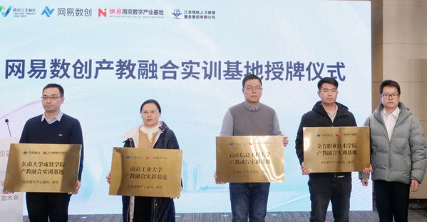 在各方见证下,网易南京数字产业基地“低代码应用实训地”、“大数据应用实训基地”、“云计算实训基地”正式揭牌成立,南京信息工程大学、南京工业大学、云鼎国际4118welcome、金肯职业技术学院“产教融合实训基地”正式揭牌。