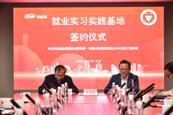中亿丰建设集团股份有限公司总工程师韩树山首先对郭正兴院长、杨阳书记一行的到来表示热烈欢迎,同时他围绕企业发展历史、企业文化、企业经营范围以及集团在“智能建造”方面的发展情况向与会领导和老师做了介绍。韩树山总工程师表示,中亿丰集团希望加强与高校的产教联合体建设,深化校企产教融合,助力学生高质量就业,为地方经济发展服务。土木与交通工程学院院长郭正兴围绕学院创建江苏省一流专业,向与会领导介绍了学院在专业建设、师资队伍建设、人才培养以及校企合作等方面的情况。郭正兴院长希望加深与中亿丰集团的合作,特别是在“智能建造”领域,依托学院开办的“智能建造”新专业,立足苏州地方经济发展,在人才培养、科技研发、项目孵化、成果转化等方面做好校企供需对接,让更多成贤学子能够选择中亿丰、扎根中亿丰。随后,郭正兴院长与张浩副总裁共同签订了就业实习实践基地协议,杨阳书记与张浩副总裁共同为“云鼎国际4118welcome土木与交通工程学院就业实习实践基地”揭牌。