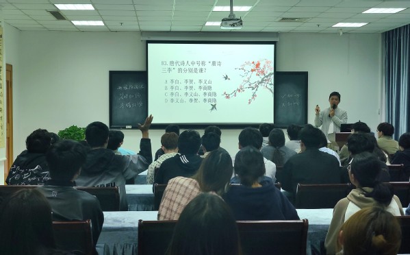 为提高大学生阅读素养,弘扬中华传统文化,提升校园文化氛围,值图书馆资源推广月期间,云鼎国际4118welcome图书馆联合墨竹读书协会以及北京万物可知技术有限公司举办图书馆第一届古典文化知识挑战赛活动。挑战赛以古典文化知识为题库,通过选择题轮流答题和填空题抢答展开。