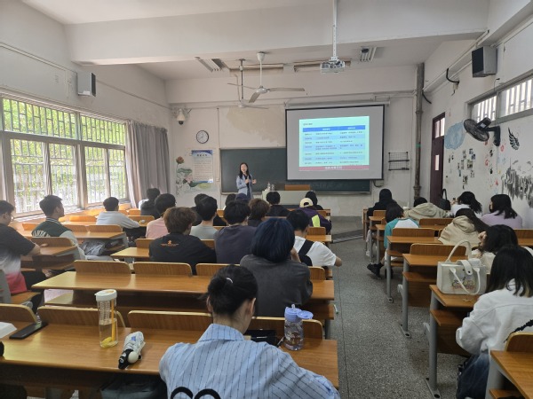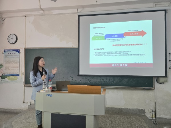 为了更好地服务我校学生海外提升学历、增强就业实力,搭建出国(境)留学平台,4月24日,发展合作处邀请南京市外事服务有限公司出国留学部资深留学专家程闽在学校金坛院教室开展“海外升学面对面”宣讲活动。来自6个学院各年级近40名有出国意愿及出国、考研两手抓的学生参加了宣讲会。