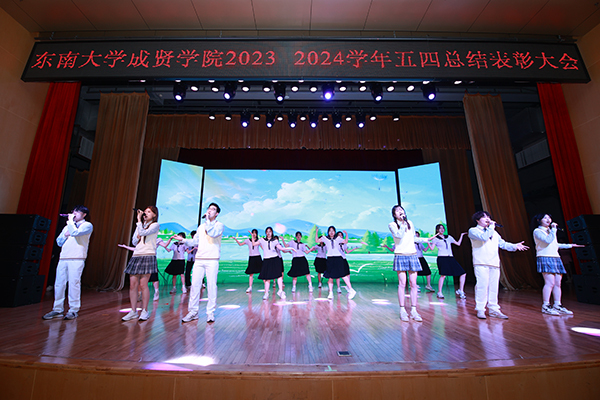 视频《青年青春奋斗》和开场舞《你最最最重要》展现了成贤青年活泼热情的青春风貌,大会在师生齐唱《中国共产主义青年团团歌》的澎湃旋律中拉开帷幕。王荣副书记在致辞中向全校一万多名青年师生致以节日的问候,向此次受到表彰的集体和个人表示热烈的祝贺。他希望成贤青年一是要学党史增信心,做理想信念坚定的爱国者;二是要强德行提修为,做社会主义核心价值观的践行者;三是要勤学习强本领,做中华民族伟大复兴的奋斗者。各级团组织要以青年为中心,为青年成长成才提供更广阔的舞台,强化团员青年对习近平新时代中国特色社会主义思想的政治认同、思想认同、理论认同和情感认同,牢牢把握当代爱国主义本质,把赤诚报国之志建立在对马克思主义的信仰、对中国特色社会主义的信念、对中华民族伟大复兴的信心上,树立起为祖国、为人民永久奋斗、赤诚奉献的坚定理想,为加快形成新质生产力推动高质量发展贡献青春智慧,不断书写为中国式现代化挺膺担当的青春篇章,以实际行动迎接新中国成立75周年!