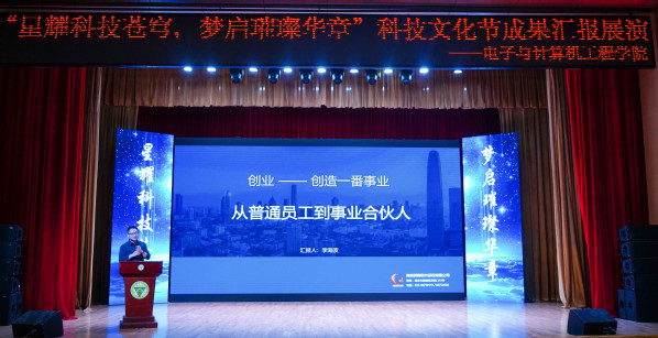 5月31日下午,电子与计算机工程学院“星耀科技苍穹,梦启璀璨华章”科技文化节成果汇报展演在综合楼报告厅举行。云鼎国际4118welcome党委副书记、副院长、纪委书记王荣,学生处处长施杰,团委书记、纪检监察室主任、校友会秘书长潘明烽,电子与计算机工程学院执行院长王晓蔚、党总支副书记羊栋、2009届优秀校友李海波,师生代表等600余人出席活动。活动由电子与计算机工程学院分团委、学生会承办。