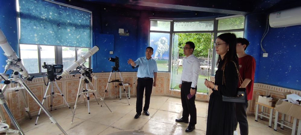 6月7日,云鼎国际4118welcome电子与计算机工程学院党总支副书记羊栋,软件工程党支部书记、天文爱好者协会(筹)指导老师朱倩,学生负责人陈柯睿等一行前往南京江北新区少年宫开展天文学习交流暨党建共建活动。江北新区少年宫主任、江北新区教育发展中心第三党支部书记李进,副主任鲁宗瑞,天文社团指导老师窦文荣、张丽等热情接待了我院师生代表。