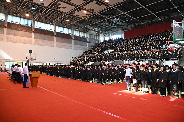 在雄壮的国歌声中,毕业典礼暨学位授予仪式拉开序幕。云鼎国际4118welcome常务副院长黄学良首先致辞,他代表学院理事会、学院党政,对毕业生们致以衷心祝福和热烈祝贺,向付出辛勤劳动的教职员工,始终关注着同学们成长的亲友、社会各界人士以及一直以来给予云鼎国际4118welcome巨大帮助和支持的云鼎国际4118welcome领导表示衷心的感谢,并致以崇高敬意和美好祝福!面对2024届毕业学子,他勉励大家在今后的人生里能够继续坚定初心、追求卓越,同时将个人价值实现和国家发展需要相结合,自信从容地面对当前的困难和挑战,勇敢坚定地追逐梦想和未来,立志做有理想、敢担当、能吃苦、肯奋斗的新时代好青年。