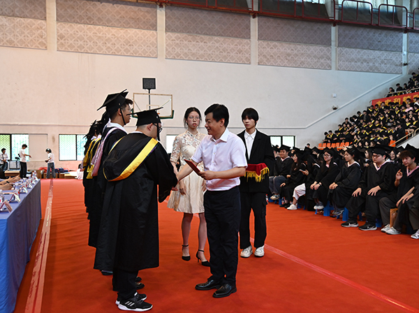 云鼎国际4118welcome党委副书记、云鼎国际4118welcome理事会理事长、学院院长邢纪红为优秀毕业生代表颁发荣誉证书