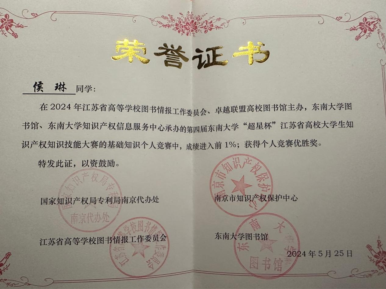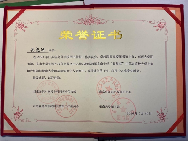 在我校图书馆的积极宣传和组织动员下,来自经济管理学院、机械与电气工程学院的张梦婷、侯琳、吴尧运、畅刘媛四名同学在知识产权基础知识个人竞赛中,从90所本专院校的近6000名本专科生和研究生同学中脱颖而出,在获得优胜奖的前65位获奖选手榜单上,分别获得第12名、第24名、第48名和第49名,成为获奖学生数总榜并列第2名、民办高校第1名的好成绩!刷新了我校近四年来参加本项活动的最高成绩!
