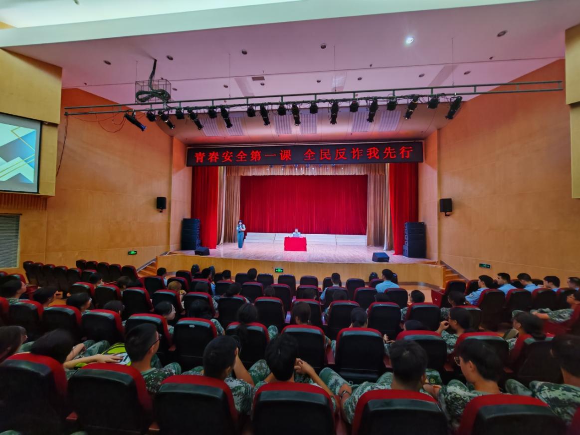 为提高我校学生的反诈意识和防骗能力,有效防范电信网络诈骗,9月2日,校保卫处、团委、2024级军训团共同举办以“青春安全第一课、全民反诈我先行”为主题的校园反诈教育宣讲会,南京市公安局江北新区分局刑事犯罪侦查中心主任马科警官担任主讲嘉宾,全体2024级新生现场聆听。