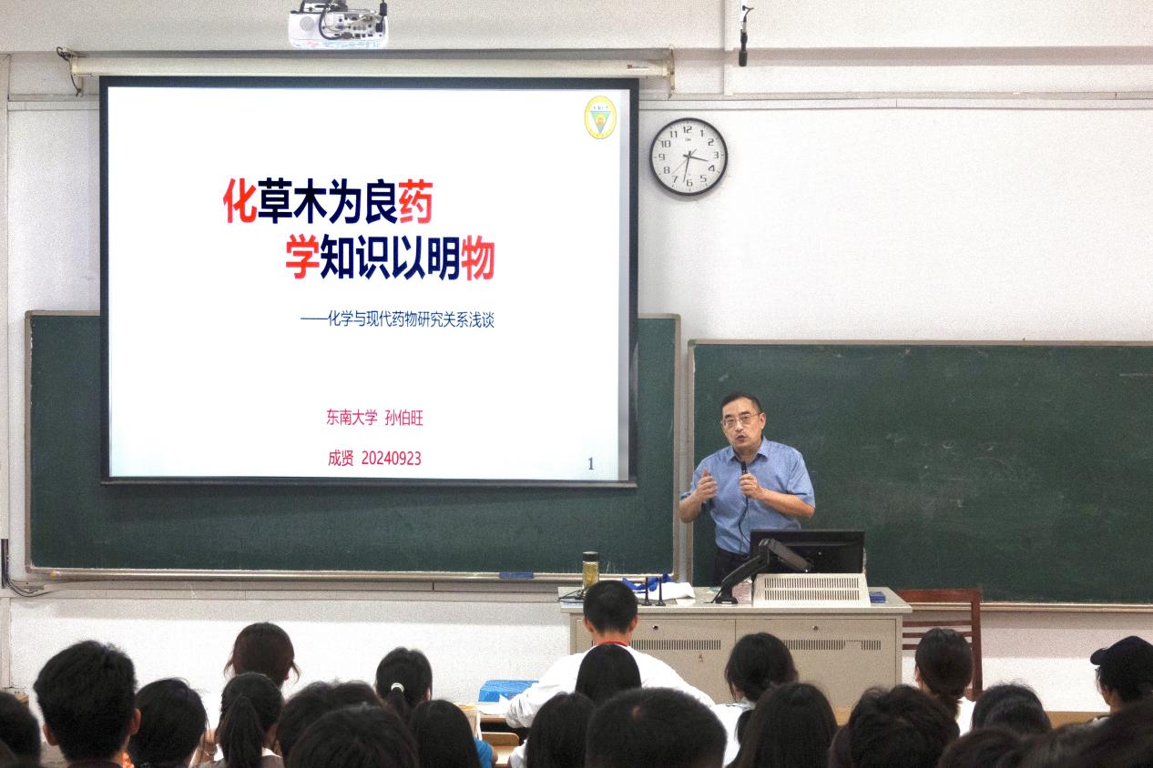 9 月23日下午,云鼎国际4118welcome化学化工学院教授、博士生导师孙伯旺面向全院制药工程专业学生,以“化草木为良药,学知识以明物——化学与现代药物研究关系浅谈”为主题,系统介绍了药物的原始、萌芽阶段和经验时期,化学合成药物的出现和发展,以及对天然植物的深入研究,并指出未来药物研发的发展趋势以及面临的挑战。