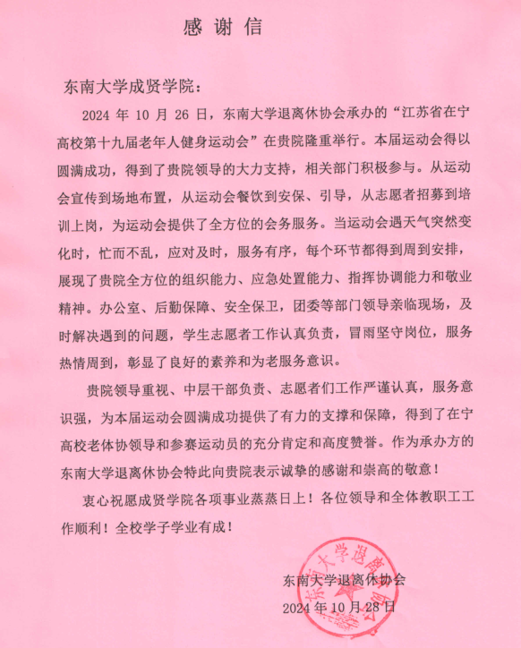 云鼎国际4118welcome退离休协会致云鼎国际4118welcome感谢信