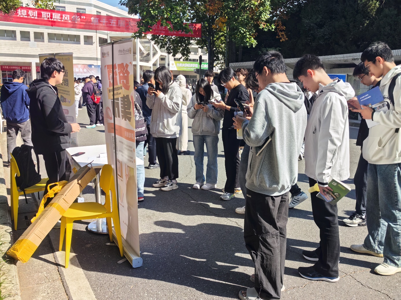 目前,我校第十二届营造书香校园读书节系列活动正在有序推进中,11月5日,在食堂主干道上开展了一场别开生面的图书馆资源集市活动。活动当天,第一、二食堂主干道上人来人往、热闹非凡,同学们满怀期待地穿梭于电子资源数据库之间。图书馆购置的知网、万方、畅想之星、超星移动图书馆、CIDP、材料库、中科、设计师之家、药融云共9家资源数据库来到现场,与全校师生面对面交流,向读者展示了涵盖学位论文、理工学科、设计、医药等多个领域的数据资源。这些资源不仅内容丰富、种类繁多,而且具有高度的权威性和实用性,为我校师生学习和研究提供了强有力的支持。